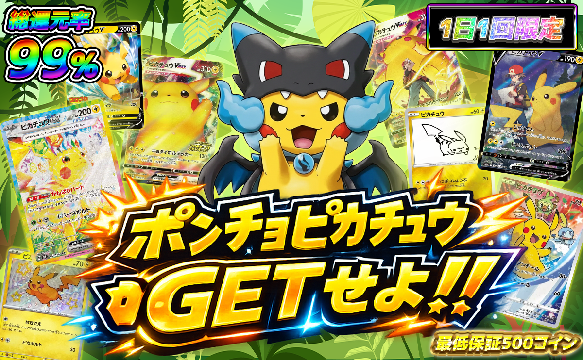 アド確のログインボーナスやポンチョピカチュウが狙えるワイルドオリパなど⚡