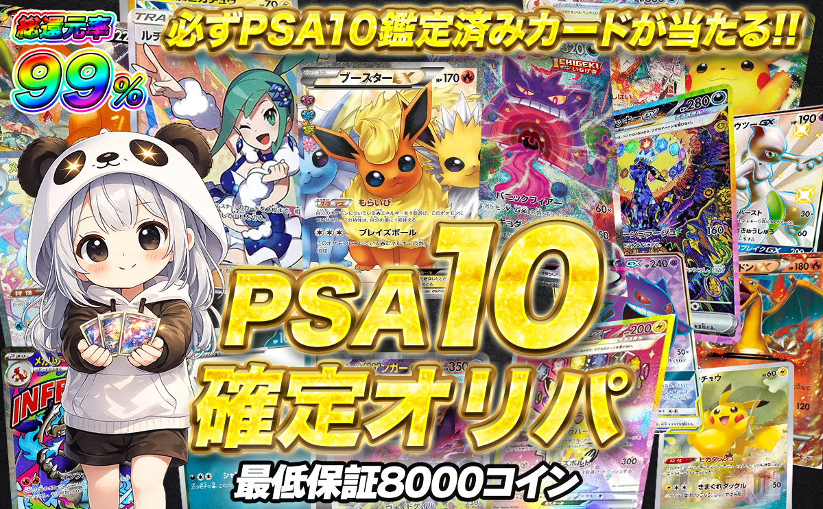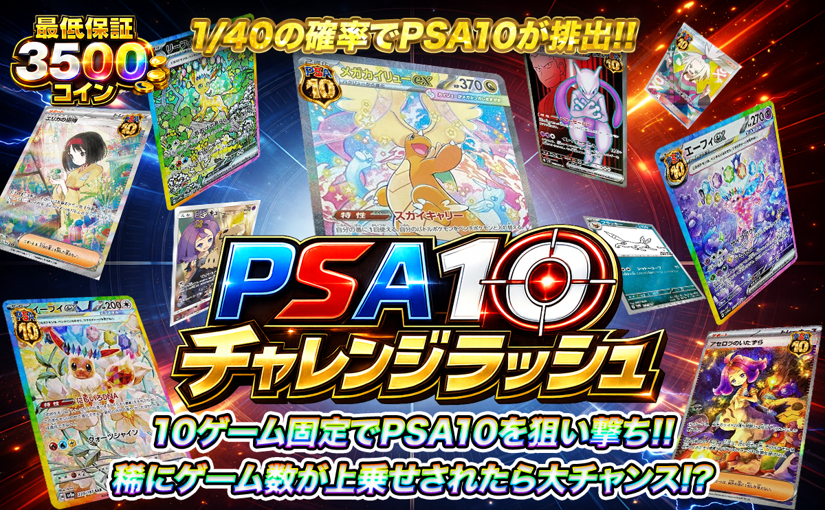 最低保証3500コインの安心設計!1/40の確率でPSA10が排出!